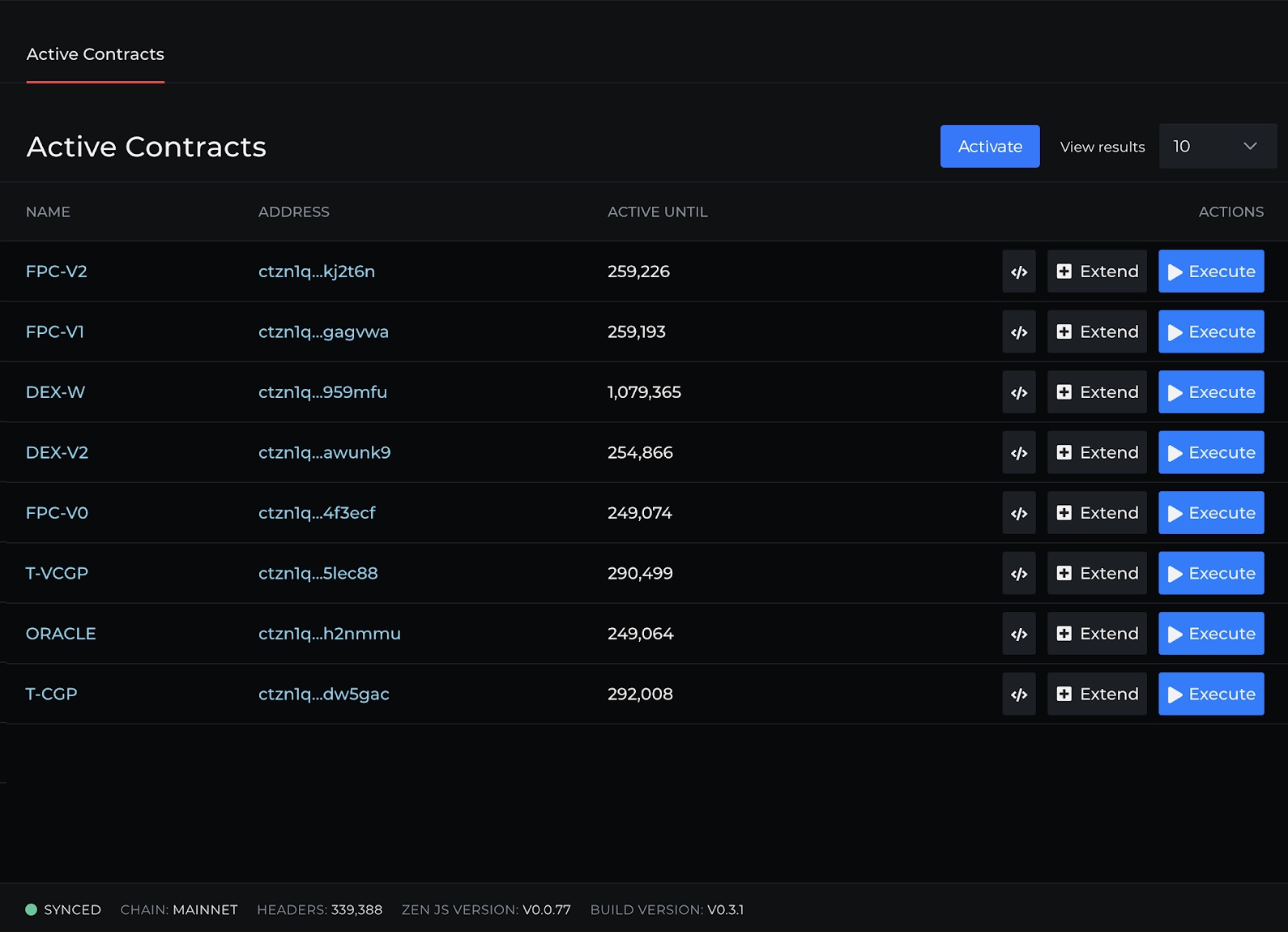 View a full list of the current active contracts on the blockchain.&#x20;